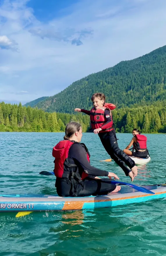 Our guided activities include whitewater rafting, scenic float trip, lake or river kayaking, lake paddle boarding, hiking, archery, cliff jumping, and kids camps.