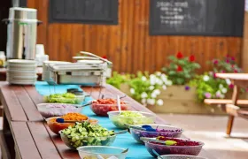 Enjoy wholesome meals overlooking the river, prepared from our energetic and hard-working kitchen. We happily provide daily plant-based specials and accommodate all diets and life styles. Your days here will be spent outdoors engaging with your family, friends, guides and even some wildlife! Unwind with evening campfires, a soak in the hot tub, a therapeutic massage, or entertaining live music!